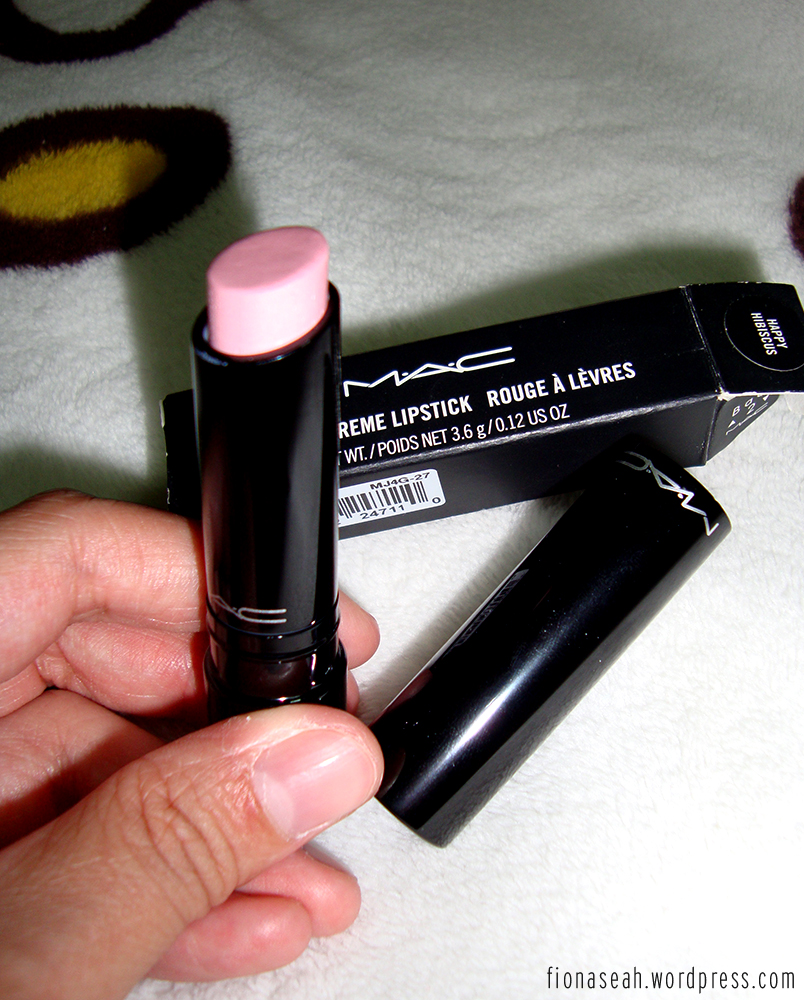 This is in a very pale baby pink shade and is really hard to pull off. It looks very nice on Google images though. I think it’s very suitable for people with fair skin once again. I blend this with a deep red lippy to give a more pinkish lip colour.