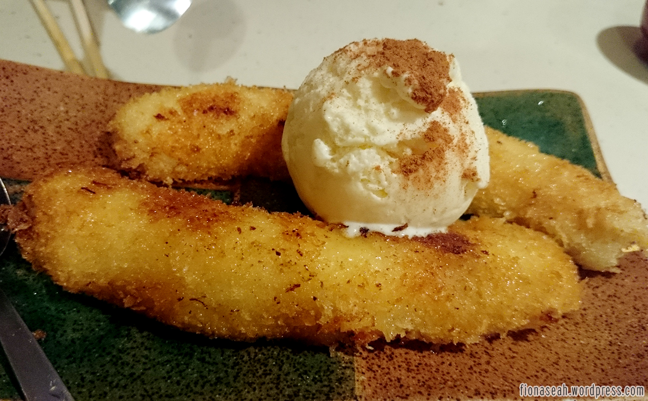 For desserts, we ordered Teppan Banana. It’s basically banana split but the banana is cooked with metal griddle to give that crunchiness. YUMS! Ice cream is topped with some semi-bitter powder which tasted like.. cocoa? Before I could really taste it it had already dissolved into the ice cream so yeah -_-