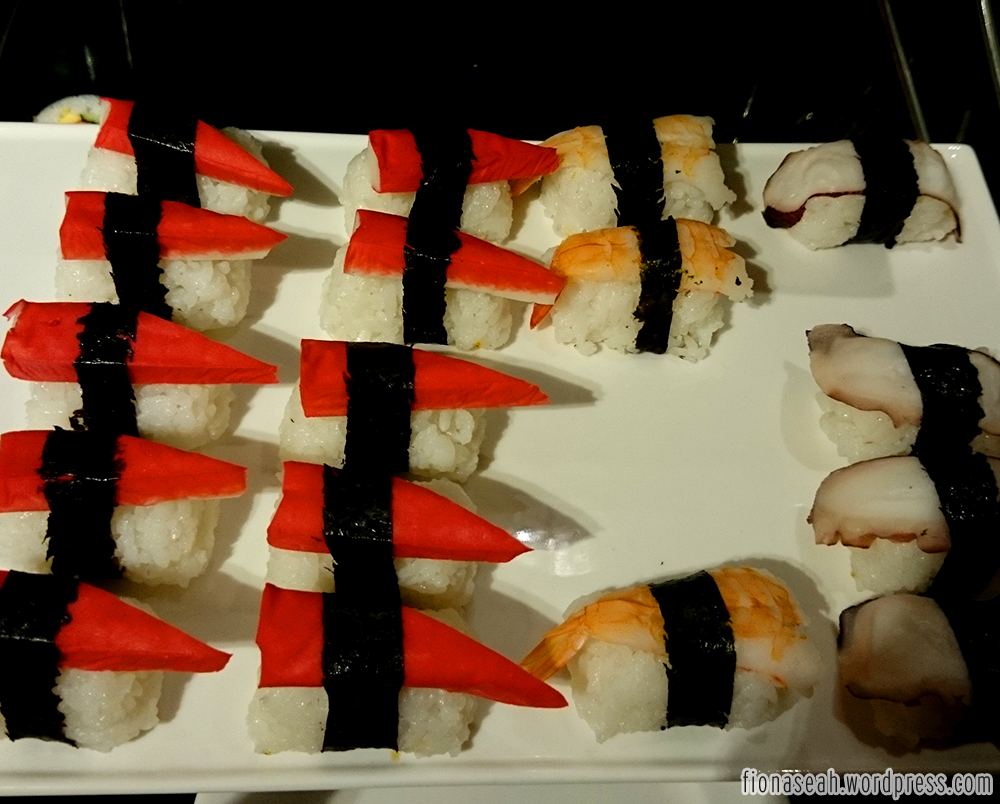 Many people who weren’t seated near the bar would not realise that there was actually another row of food at the other end of the restaurant. That row offers Japanese cuisine and other types of seafood if you’re tired of the main dishes. Nothing fantastic though, so don’t expect so much. Beside it was a section for 4 ice cream flavours (chocolate, strawberry, vanilla and green tea) and their garnishes like strawberry or chocolate syrup, cornflakes, waffles.. you name it, they have it. But our waffle was cold and soft, probably left in the open for a long time, hence one bite was all we took 😛