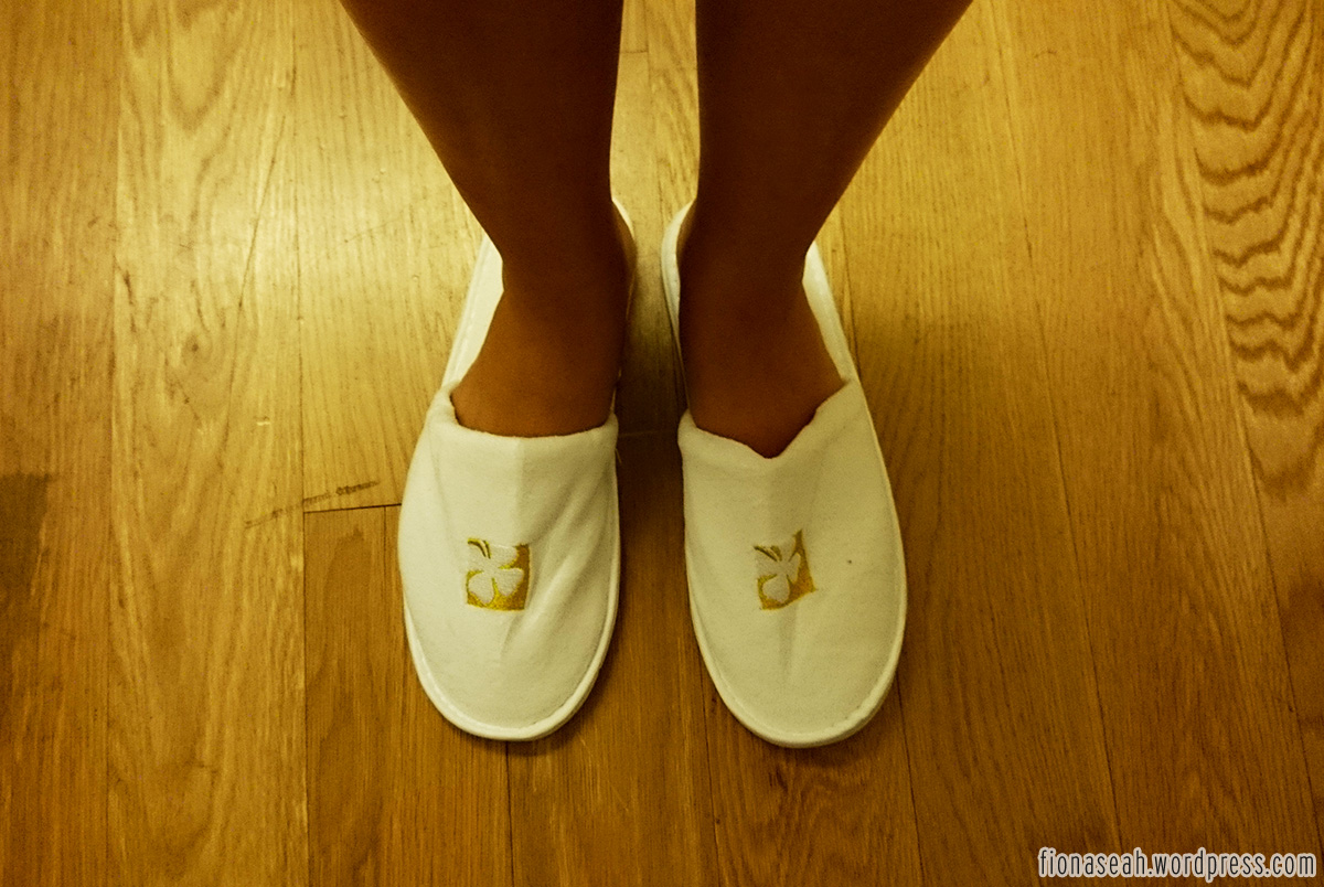 Bedroom slippers made of THICK, QUALITY, STRUCTURED fabric (can’t tell what exactly that is) that won’t spoil so easily. I’m so impressed. It’s probably the best bedroom slippers I’ve gotten so far. (Psst, took one pair home)