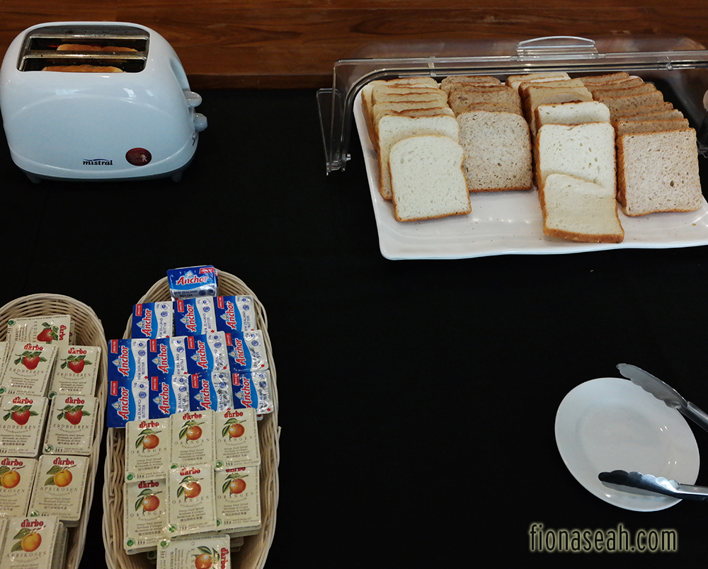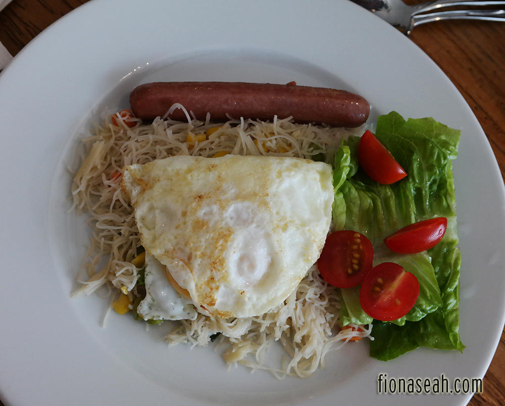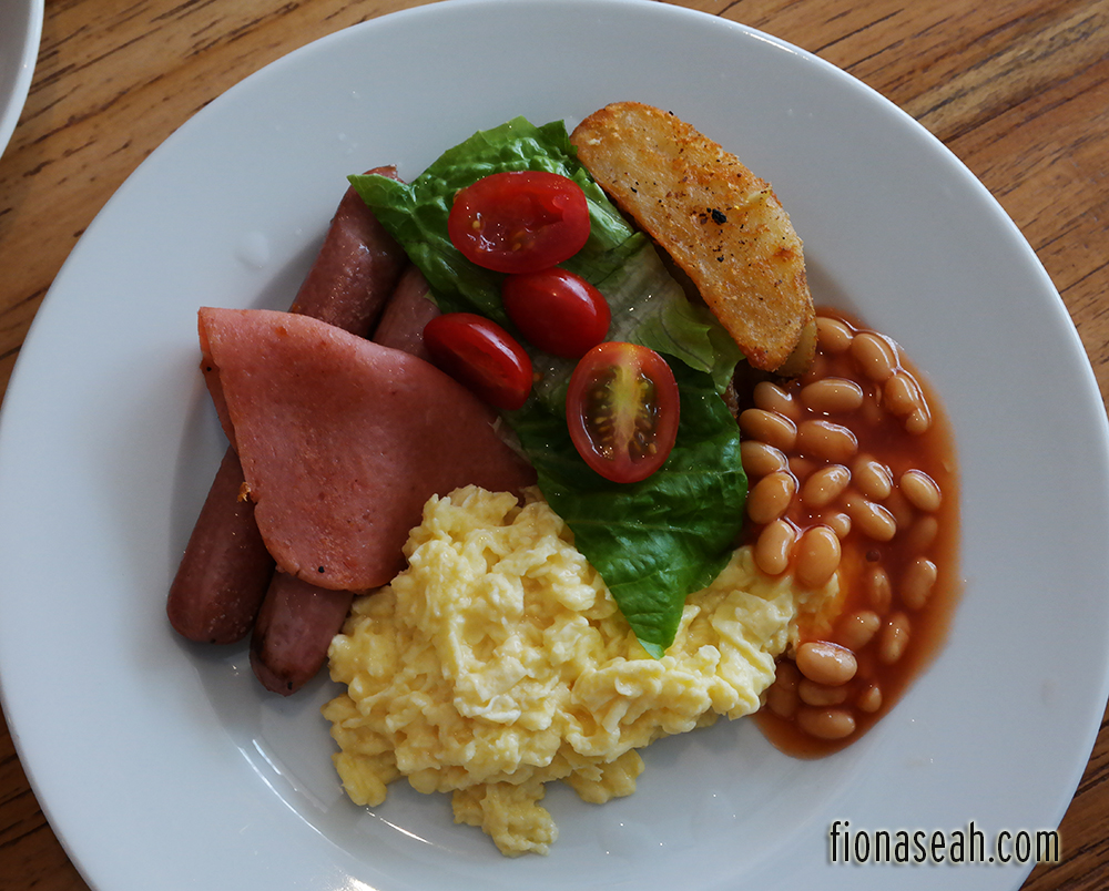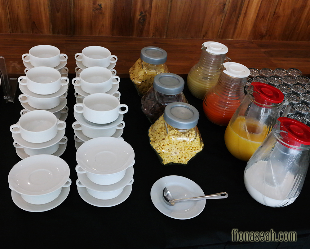 I went to bed at 4am as I was immersed with tuition lesson preparation (yes, still had to work the next day) and got up at about 9am for breakfast! I expected breakfast buffet like any other hotels but when we went to the dining area, we were told to choose between “Western” or “Asian” breakfast. Puzzled, we took a quick glance at the buffet table and saw only bread, condiments, cereal, beverages and utensils there. So yes, the young chef was definitely going to make us breakfast! We chose the Western one.