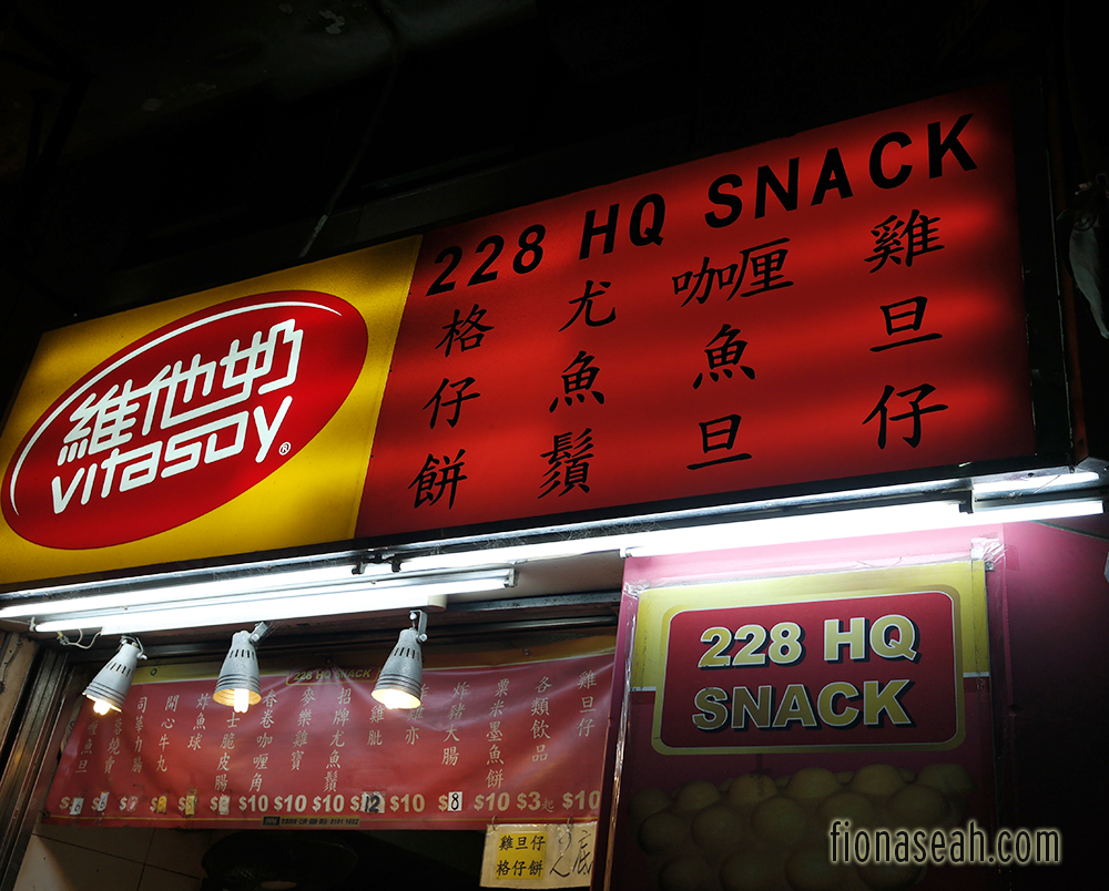By 10pm, most of the shops were already closed and we were left with a few eateries to choose from. We eventually settled for 濤记香港仔鱼蛋王 (Tao1 Ji4 Xiang1 Gang3 Zai3 Yu2 Dan4 Wang2) just across the road from the egglets shop.