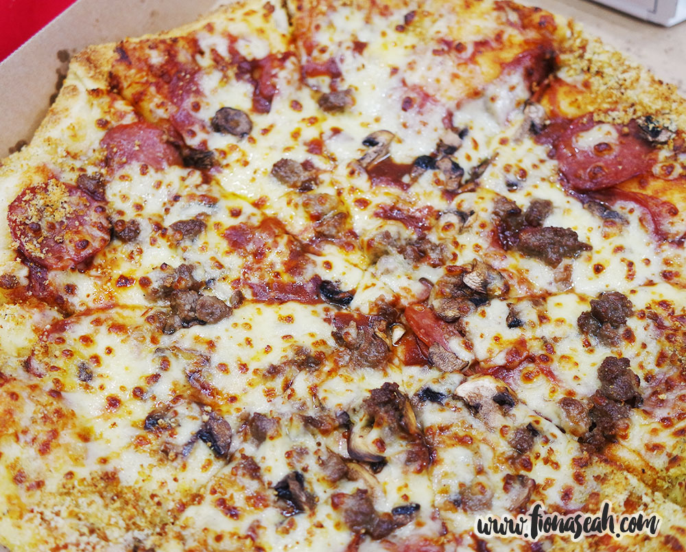 I must admit, though, that it’s exceptionally delicious only when served straight from the oven so you can savour the crunchiness of the crust. It doesn’t taste as nice when it’s all cold and soggy in the middle (I know because I inadvertently left my second slice under the air-conditioner and it was blergh). But fret not! Domino’s Pizza, as you know, has a 30-minute delivery guarantee (and a 15-minute takeout guarantee) so you can rest assured that your orders would be delivered to you hot and fresh. Otherwise, do consider dining in!