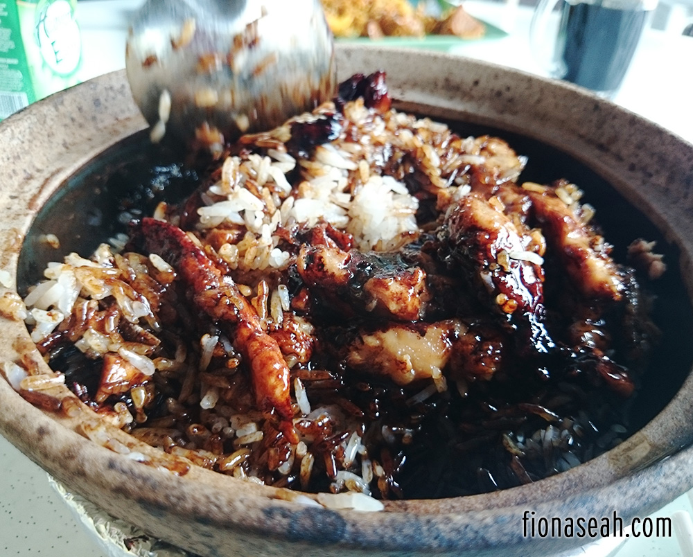 The aromatic claypot rice topped with lap cheong and salted fish