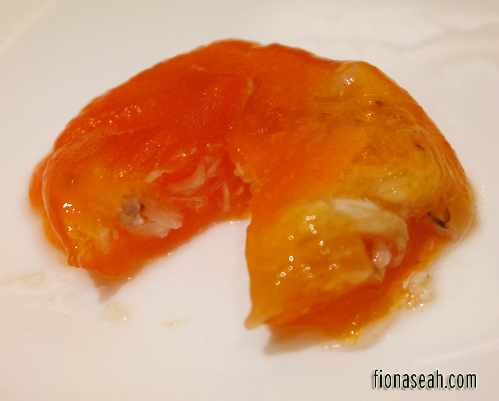 But please refer to the above picture to have an idea how flowy it is (because it’s taken with a better camera this time!). However, I’d like to add that the oil-like liquid beneath the custard isn’t oil. The custard is actually made from high-quality, low-cholesterol egg yolk and pure butter. Hope this makes you health conscious people feel better eating it now! To be honest, I didn’t know this fact prior to this food tasting. Now that I know, I’m certainly not going to show mercy next time. I AM GONNA ORDER 3 SETS AT LEAST. Dieting can wait 😳