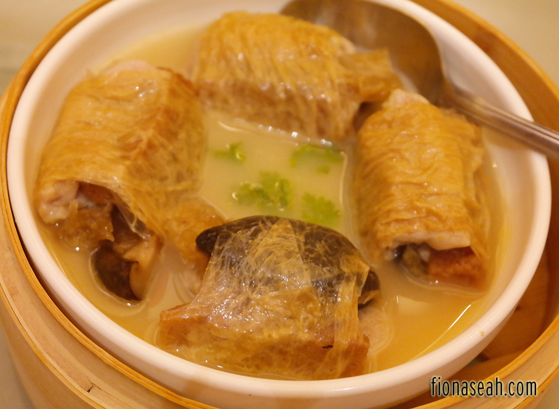 I’m not sure what the best way of eating this is because the beancurd skin makes it very difficult to be cut. So I suggest abandoning your dining etiquette (I know ladies like myself love to cut their food because it’s practically unglam to eat something in one mouthful haha) and just eat it altogether at once to fully savour the flavour. It’s not that big (but it’s thick) so you should be fine. 😆