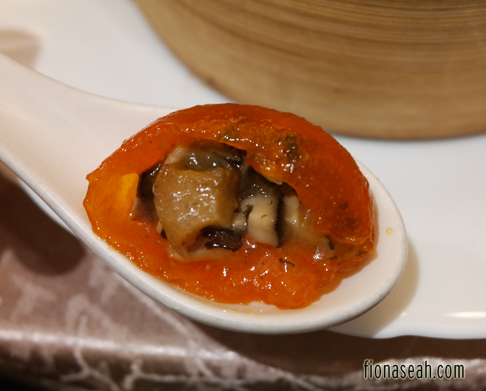 This was one of my favourites from the set menu, or perhaps my favourite if you don’t count the custard bun. Bf regarded this as the restaurant version of Puen Kueh and I felt that this tasted a little like Ba Zhang (but of course, way better), minus the slight crispiness on the top which I really enjoyed. Don’t worry, it’s definitely not as dry as Ba Zhang, neither was it too sticky. It’s actually relatively moist so none of it got stuck between my teeth. This was served with an X.O. sauce that has a very strong dried shrimp smell but nonetheless, complemented this dish very well. Bf really loved it as he took several servings of the sauce.
