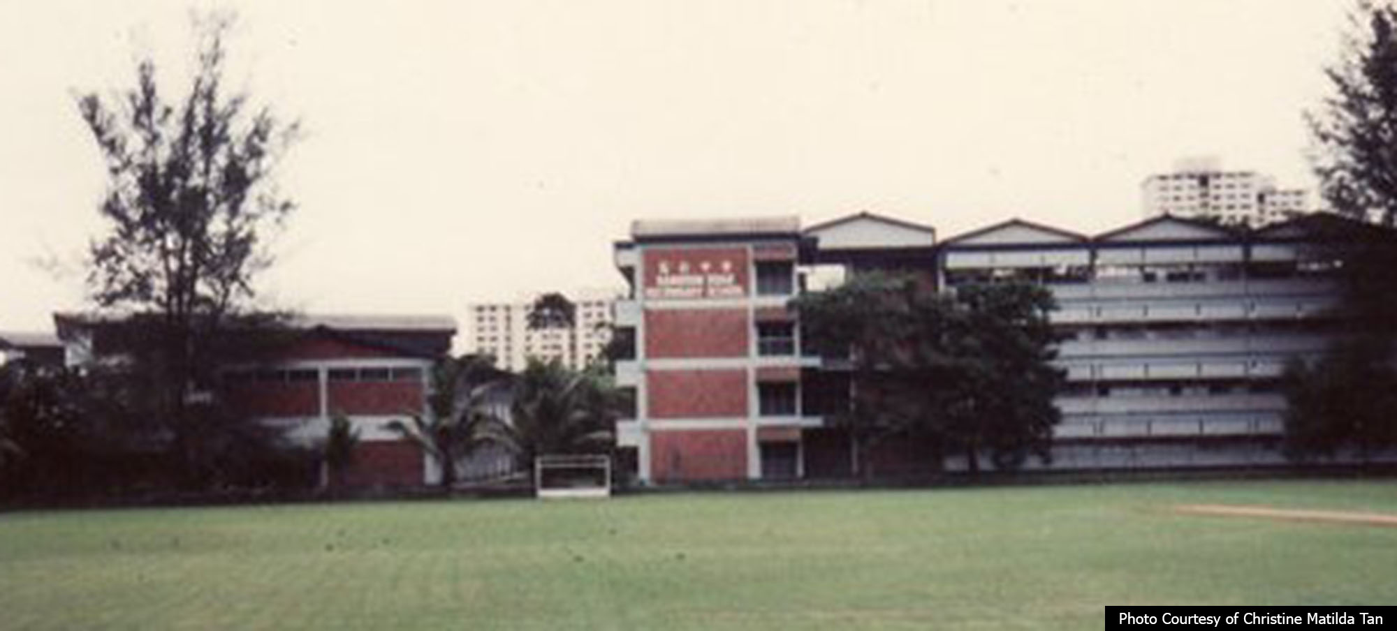 The primary school was founded in 1957 at the now-defunct Bah Tan Road. As it was built in the 1950s, it did not have modern facilities of the newer schools, thus making it more susceptible to damage. On 4 January 1985, a freak storm which had initially caused tiles and classroom lamps to fall subsequently tore off the school roof during school hours, forcing their students to share classrooms with nearby Canberra School. Thankfully no one was hurt because of the quick thinking of the school’s senior assistant who evacuated everyone occupying the third-floor classrooms to the ground floor before it happened. When the building was rendered unsafe and beyond repair, the then-Education Ministry decided to close the school and transfer their students to neighbouring schools such as Canberra School and Jiemin School in Yishun.