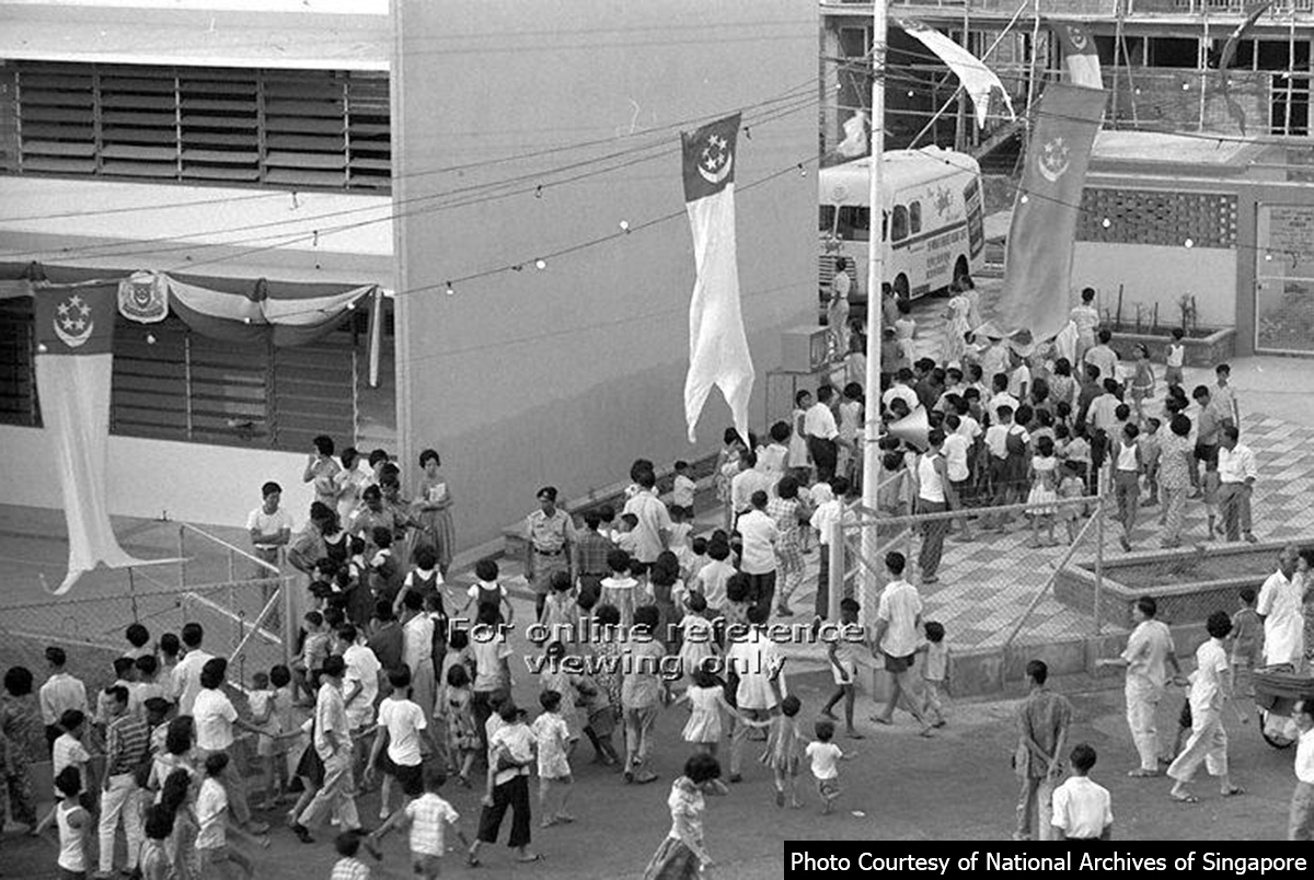 Originally known as Kembangan Integrated Primary School, it was the 36th school opened by the PAP government built in the heart of the kampong in 1963. The four-storey building had 24 classrooms, three special rooms, a large teachers’ common room, bookshop and a big tuck shop-cum-assembly hall and could accommodate more than 2500 pupils in both morning and afternoon sessions.