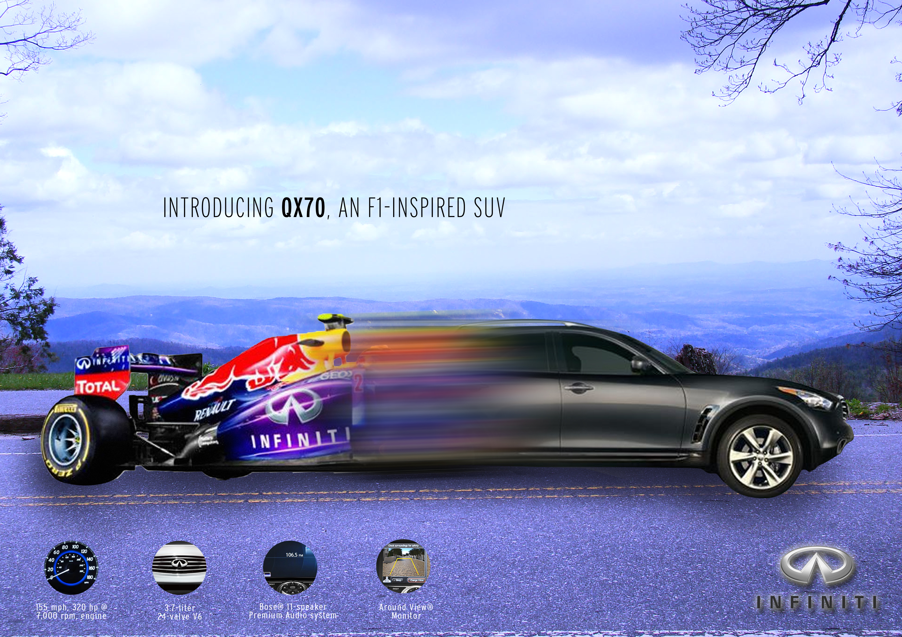 Infiniti QX70 May 28, 2014May 28, 2014 / Fiona Seah Ad mockup for Infiniti QX70. A school assignment (2014)