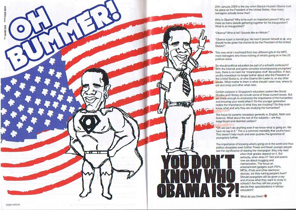 One of the layout design I did for a campus publication. The theme for this was Obama and I did an illustration/caricature of Obama himself and the American flag as the background. Believe it or not, Obama was drawn free-hand (no Bamboo tablet) with my trusty mouse!