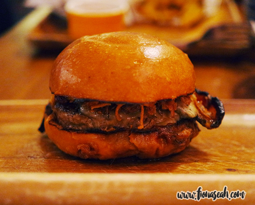 Smokin’ B-Boy (S$25++) – “Prime 120g beef patty, double applewood smoked cheddar, Dingley Dell beer & treacle cured bacon, BBQ ketchup, smoky mayo & crisp onions in a demi brioche bun.”