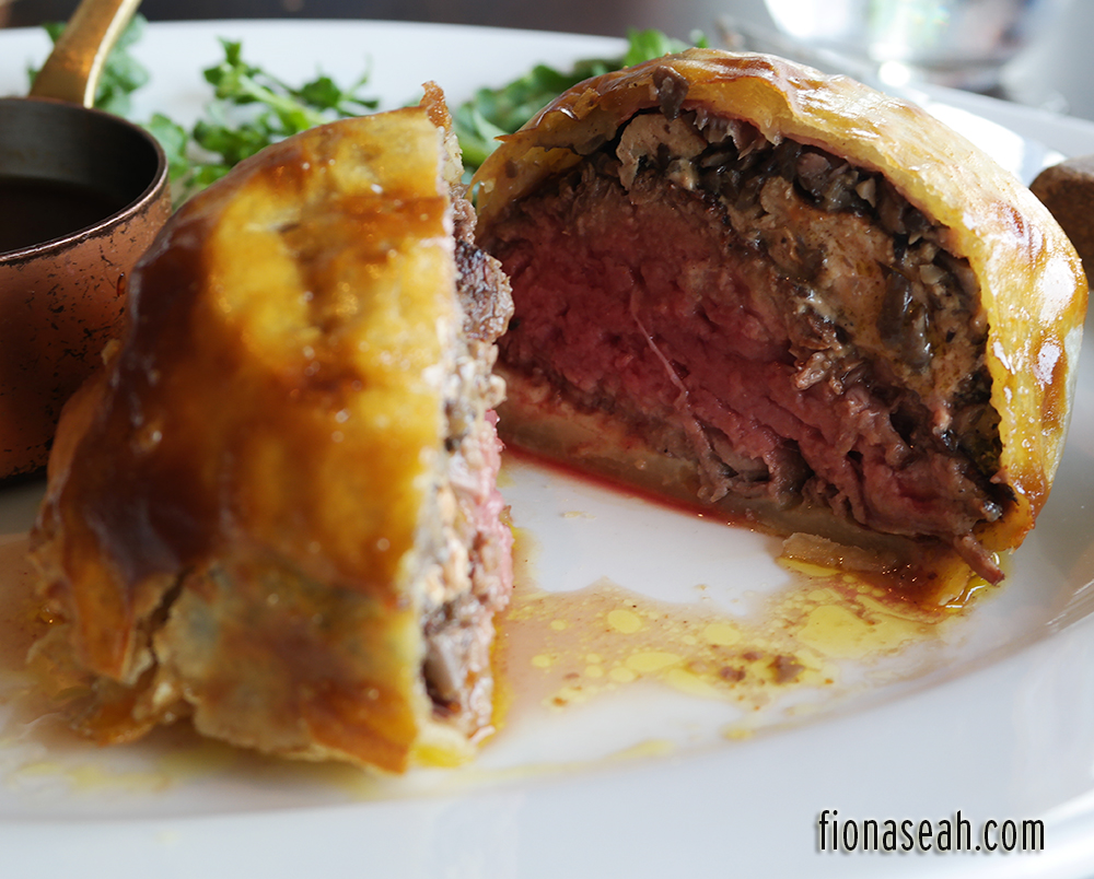 We had a choice between the filet steak and Salt-Baked Atlantic Cod (with grilled Maine scallops, prawn ravioli, crisp squid tentacles, zucchini and saffron-cream sauce – just for the record) for the main course. As we had previously dined at Privé Grill twice before, we knew that the restaurant’s specialty is steak. Hence the filet steak for our mains.