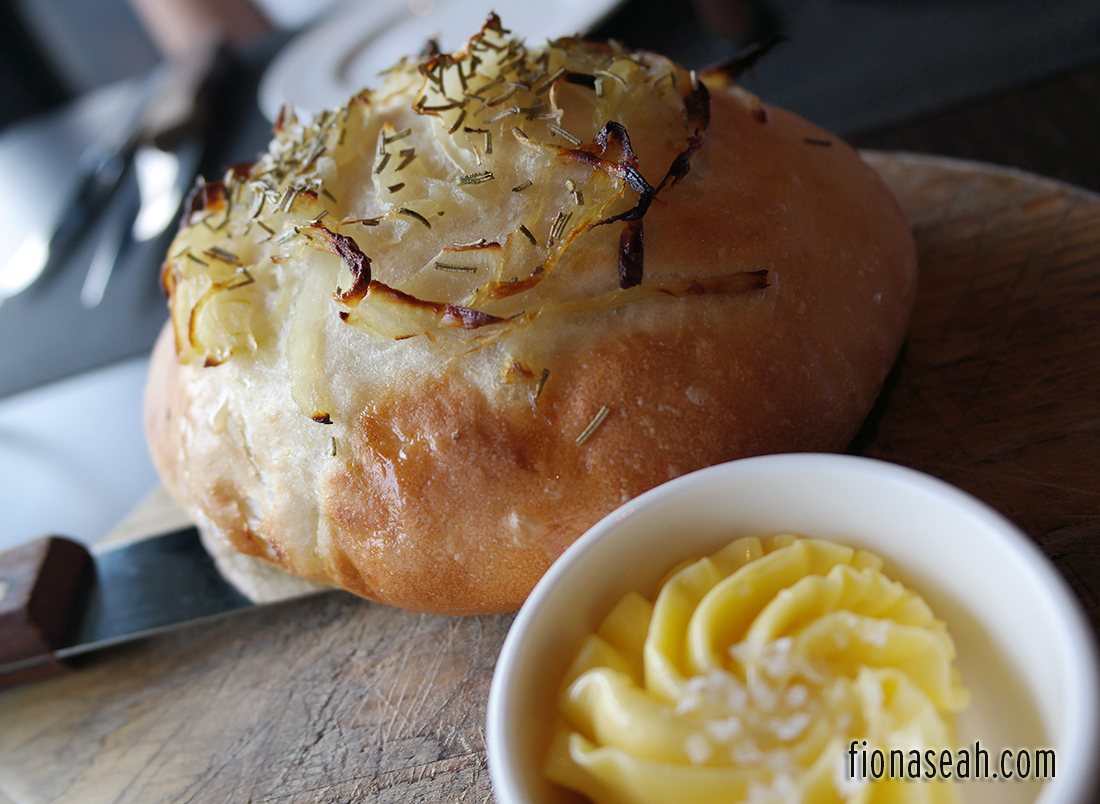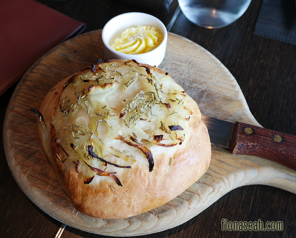 Then came another complimentary starter with two components. I believe this was supposed to be Tomato Bruschetta where you’d have to eat both together (by spreading the diced tomato on top of the bread). But there was obviously too little tomato for that to be done so we just ate the bread and the tomato on its own. 😛