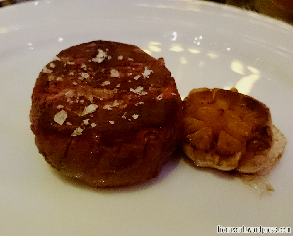 My main: Hereford Grass Fed, John Stone Longford, Republic of Ireland. Tenderloin 250g. (S$62) The small thingy on the right is just garlic.