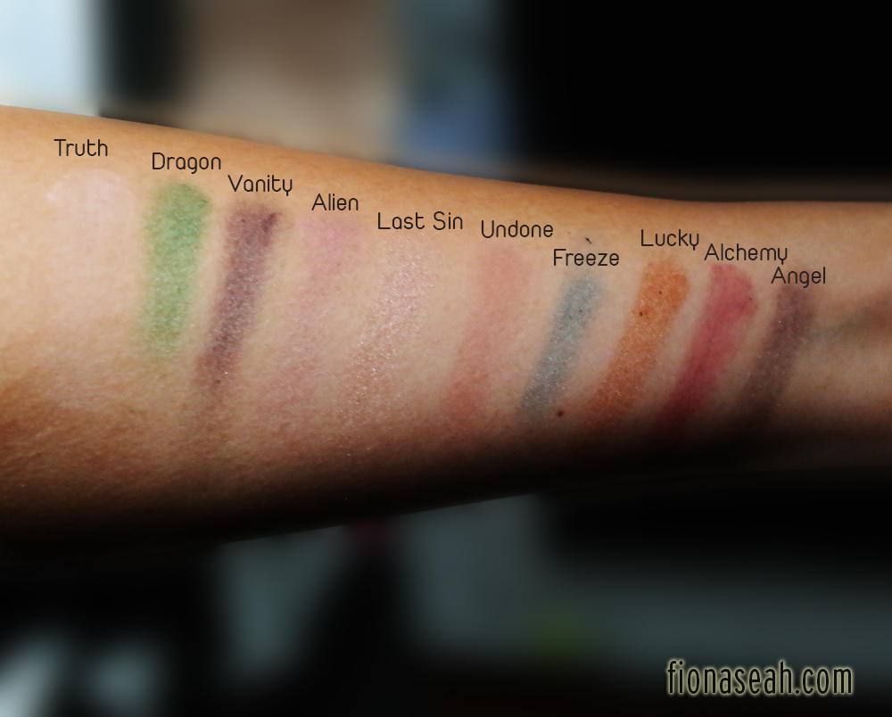 Every shade here features the Pigment Infusion System™, which according to Urban Decay, is a proprietary blend of ingredients for rich, velvety, blendable color that lasts and guarantees little to minimal sparkle fallout. Indeed, they blend like a dream but I wouldn’t say the same for the sparkles. Low and Crowbar, for instance, have the tendency to fall out during application and it can be a real pain removing them without destroying the rest of my makeup! So if I had to use these two shades, I’d definitely do my eye makeup before everything else.