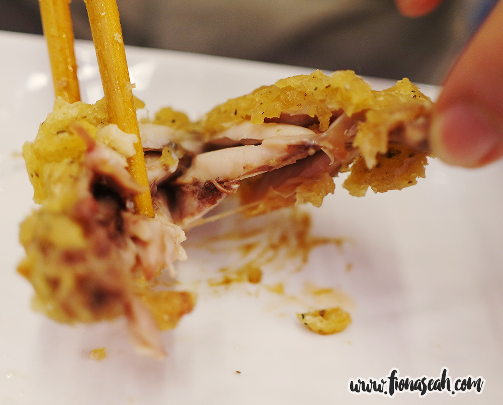 The batter was a nice golden brown but it looked a bit puffed up with excess breading noticeable on various parts of the wings, making them look a lot bigger and meatier than they originally were. But the wings themselves were superb and the meat was moist and succulent with a tinge of spiciness because of the pepper in the marinade. If you have low tolerance for spiciness, submerging the meat into the nectarous caramelised dip would only make it worse because it’s also loaded with pepper. But I’d say go for it because the dip is so heavenly, it’d make the burn worthwhile 😉